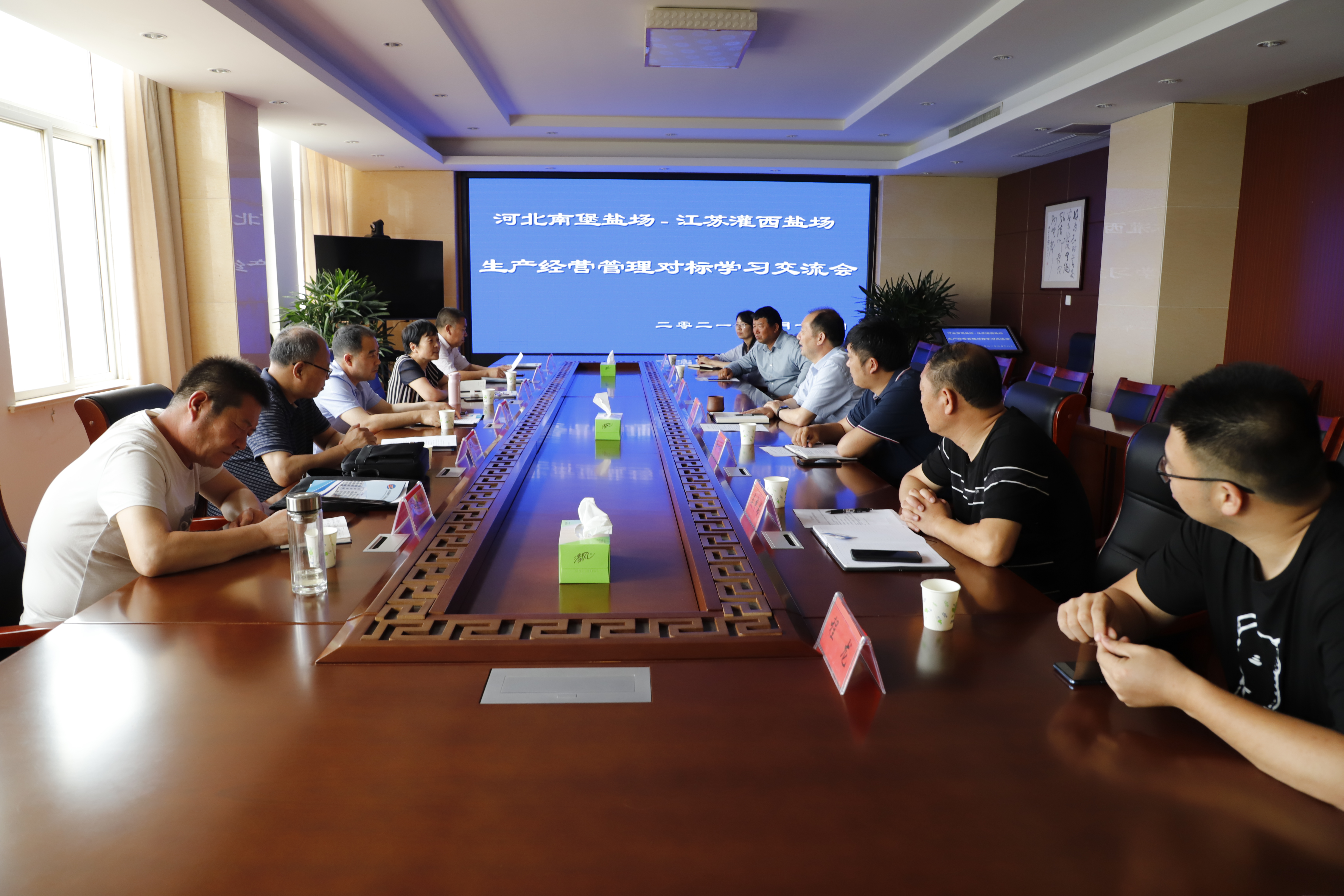 6月18日,河北省南堡盐场有限公司国有资产管理处处长赵树理、劳动改造管理处处长康群兰等一行来灌西投资公司就生产经营管理工作对标学习交流,灌西投资公司党委书记、董事长、总经理李国文等陪同交流。