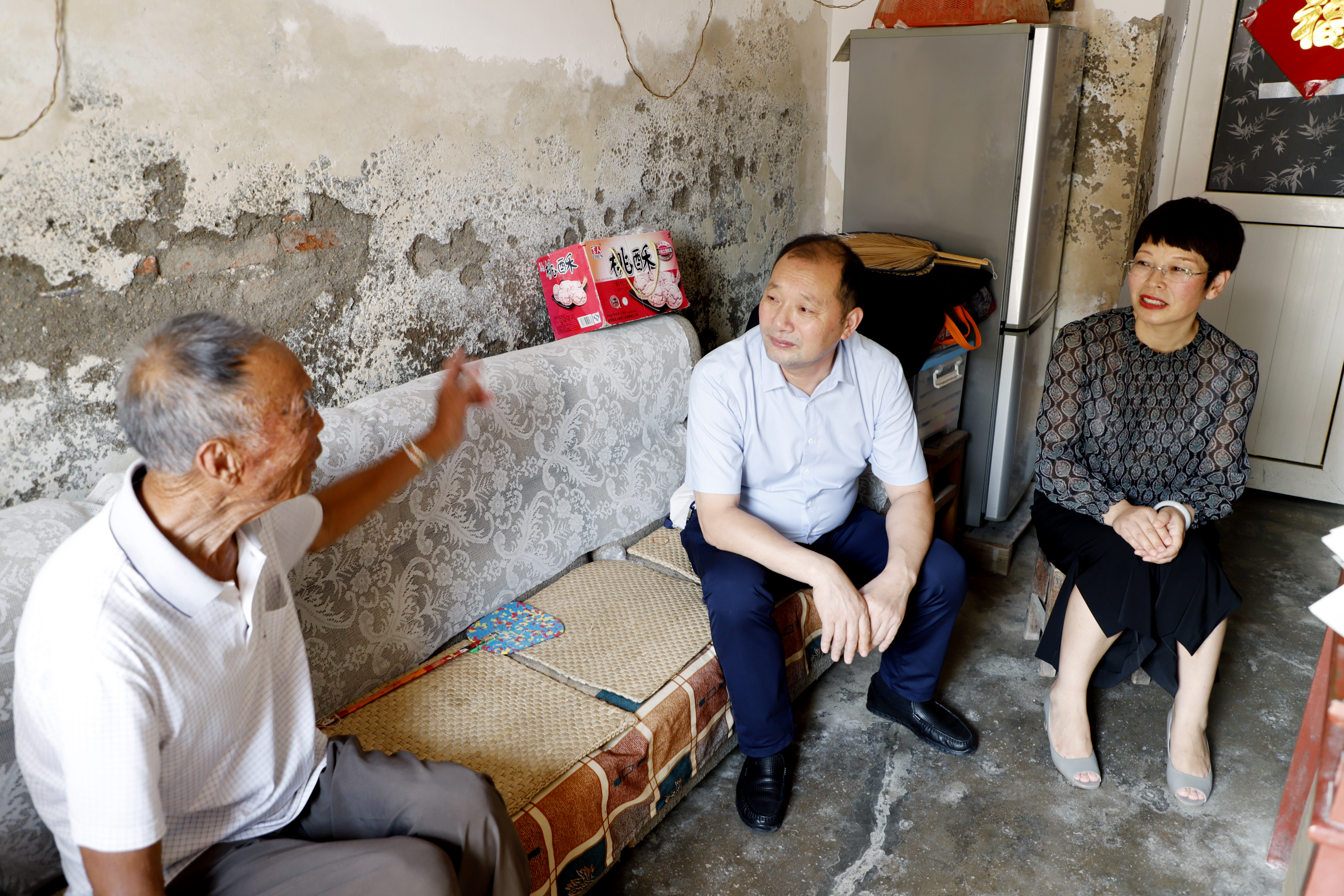 在中二圩社区老同志方建家中,李国文搀扶老人坐下,与老人及其家人围坐一起,亲切地拉起了家常,倾听老人讲述自己的抗战经历。详细询问方老的身体健康情况和生活起居习惯,并代表灌西投资公司党委向他致以亲切问候。(张明建)