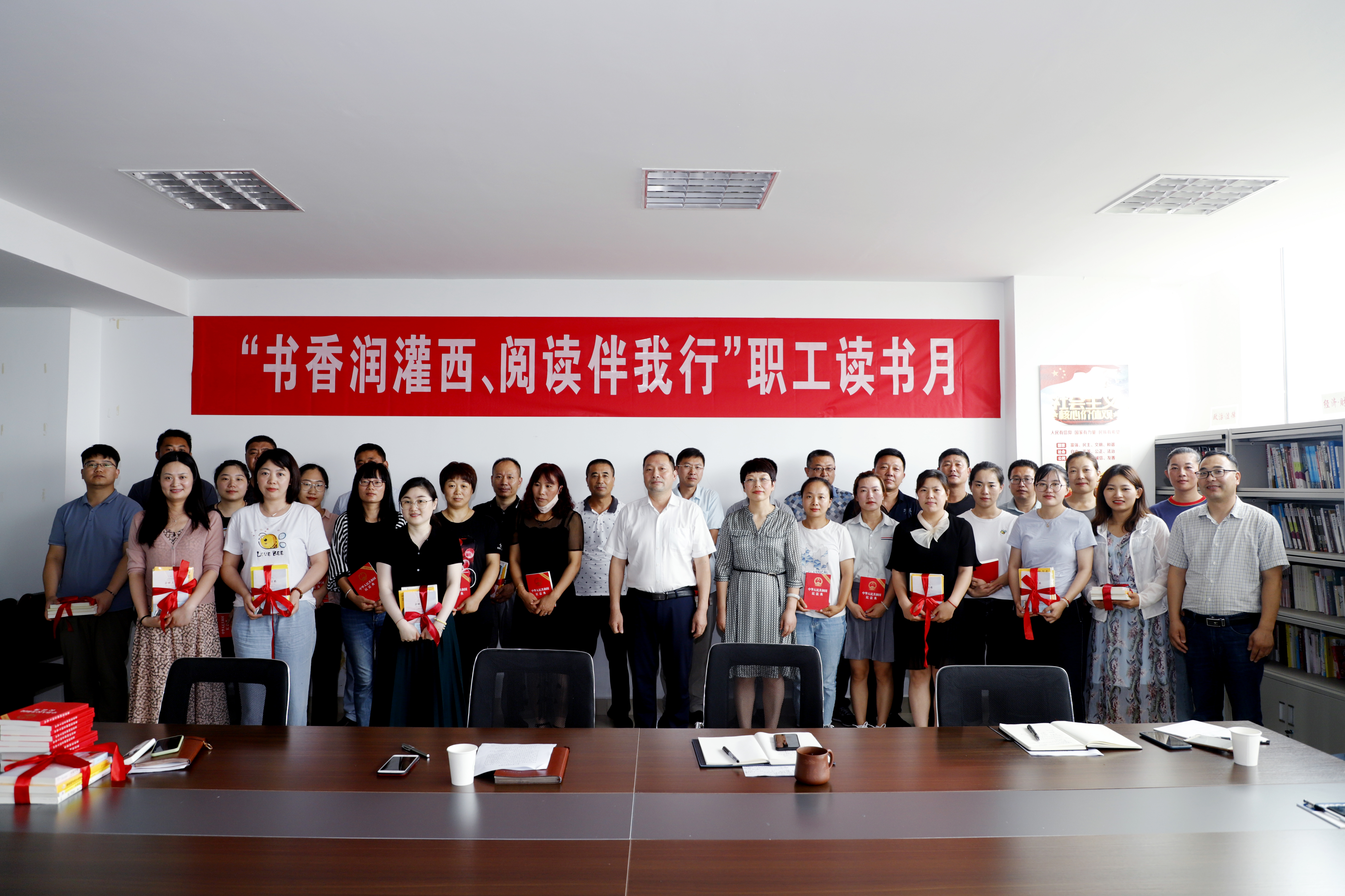 为进一步激发广大干部职工爱书、读书的热情,培养职工以学习推动工作、以工作促进学习的行为习惯,8月7日下午,灌西公司工会在机关四楼图书室开展读书交流会活动,这标志着该公司“书香润灌西阅读伴我行”读书月活动正式启动。公司党委书记、董事长、总经理李国文,党委副书记、工会主席王宏,各单位分会主席、女工委员,公司工会相关人员参加了活动。