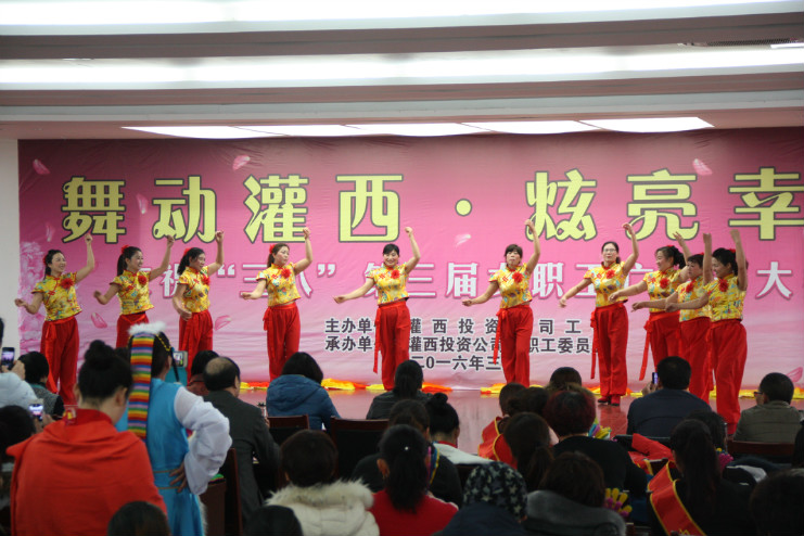 为了迎接第106个国际“三八”妇女节的到来,3月8日上午,灌西投资公司举办了“舞动灌西·炫亮幸福”第三届女职工广场舞大赛。这次比赛邀请了尚庆叶等七名B体育(中国)公司各单位原女工主任担任评委,做到了公平、公正,比赛成绩充分显示了各自的真实水平。来自全公司各单位共11支参赛队伍给大家来了精彩的表演,观看比赛的职工群众200余人。