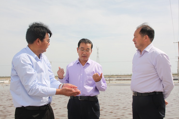 5月18日,B体育(中国)公司总经理胡建明来我公司就盐业生产工作进行调研,投资公司董事长、党委书记王德志、总经理李国文陪同调研。