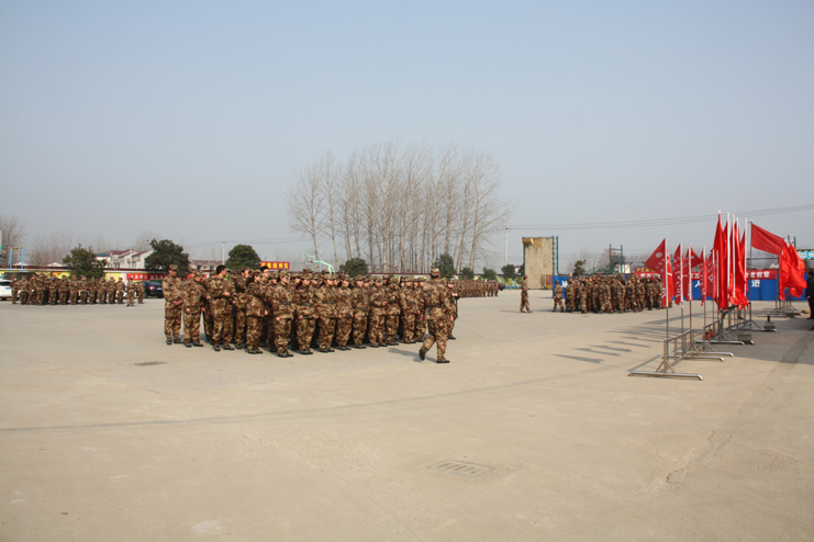 2月28日,灌云实训基地,“三大纪律八项注意”军歌响彻全场,军事训练区的横幅标语“苦不苦想想红军二万五,累不累看看革命老前辈”十分醒目。“稍息、立正、向右看齐……”随着教官们的口令声,只见灌西投资公司30名“80”后青年管理人员与县属单位公职人员身穿迷彩服,一起列队,在教官的示范下,正在一丝不苟地做各项动作,按照指定动作要领,站立军姿,快速进入了角色。