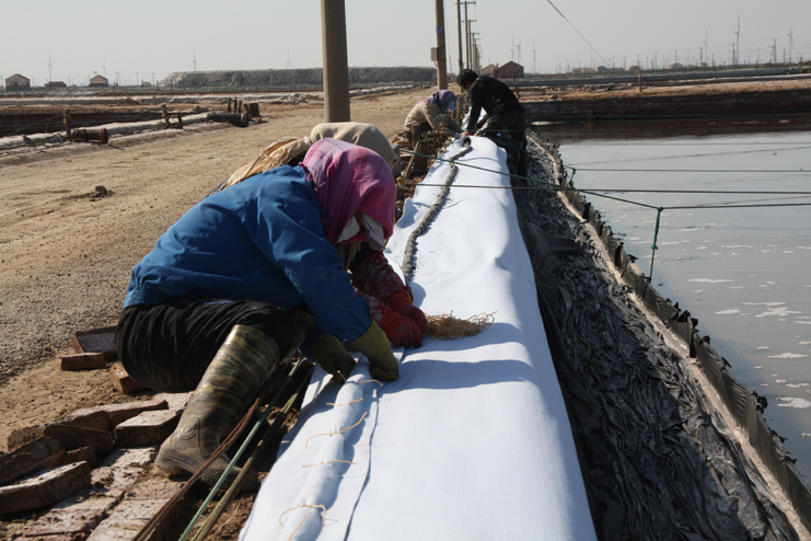 3月14日下午,风和日丽,在日晒制盐公司广阔的结晶生产区,洁白的盐廪、洁白的格堰在阳光照耀下,显得格处醒目,只见工人们有的在扒盐,有的在破碴,还有的在更换塑布......全公司上下一派大干场景。B体育手机官方网站入口在新河制盐分公司的八班一期生产区,只见工人们两人一组,蹲在池堰边,用土工布固化格堰,进行滩场亮化,这一片区域是公司正在建设的食用原料海盐生产基地。在一期与二期间的生产路上,B体育手机官方网站入口遇到了该公司经理安树林,他正从南边班组一路检查走来,他告诉B体育手机官方网站入口,自公司职代会召开过后,新河制盐分公司通过支委会、班组会迅速传达公司职代会精神,贯彻落实班组承包方案,对照全年产盐55万吨的目标,做好任务分解。当前盐业生产积极做好破碴、活碴、更新塑布等工作,全力推进扒盐工作,今年以来已经扒盐3.6万吨。
