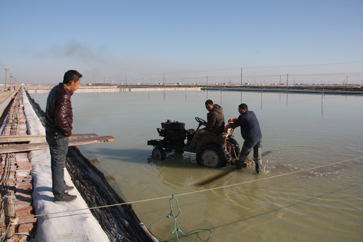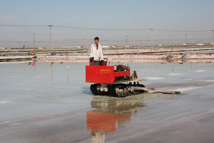 在埒南制盐分公司的八班,B体育手机官方网站入口看到一名工人正熟练操作着一台整平机械在结晶池内来回移动,对扒过盐的格块进行整平,还有几名工人用铁锨整平机械到不了的边角地带。由于在廪基上没有看到盐,而结晶池已扒过盐,B体育手机官方网站入口觉得奇怪,经了解,原来今年新扒盐已经有部分销售了出去。埒南制盐分公司经理杨守兵正在九班的滩上查看机械破碴情况,他说道:“B体育手机官方网站入口以委员包片形式深入班组贯彻公司职代会精神,加强形势任务宣传统一思想,让员工认识到当前原盐市场回暖行情,鼓舞士气,振奋精神,全力投入到当前春季生产中来。”