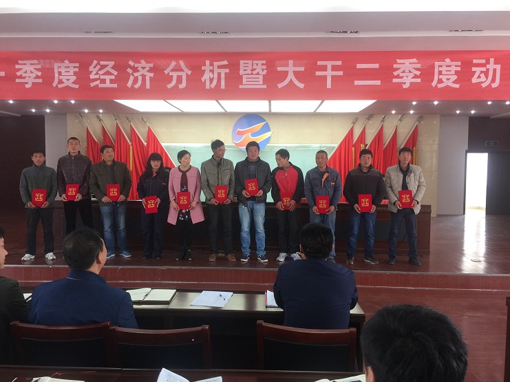 会上,总经理李国文对两大公司一季度工作进行了全面总结,指出了一季度工作中存在的主要问题,并对二季度工作进行了全面的布置安排。党委副书记、纪委书记、工会主席王保平通报一季度重点工作督查情况,宣读了冬准劳动竞赛表彰决定和大干二季度劳动竞赛意见。副总经理张学峰、徐进军分别对两大公司一季度经济运营情况进行了分析。新河制盐分公司、养殖服务公司、资产经营部负责人分别在会上作表态发言。会议还对新河制盐分公司零班等七个先进班组,王永来等三十二名先进个人进行了表彰。