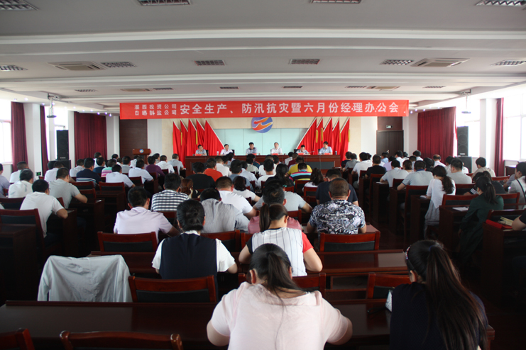 6月2日,我公司在机关五楼会议室召开安全生产、防汛抗灾暨六月份经理办公会,贯彻落实B体育(中国)公司防汛工作会议精神,分析了公司当前安全生产和防汛抗灾面临的形势,安排部署了下一步全公司安全生产和防汛抗灾工作,公司党委书记、董事长王德志出席会议并讲话,党委副书记、总经理李国文对小结回顾了两大公司1-5月份的经济运营情况,对六月份的经济工作作了详细部署。会议由党委副书记、纪委书记、工会主席王保平主持,党委委员、副总经理古浩光、张学峰、徐近军以及全体管理人员参加会议。