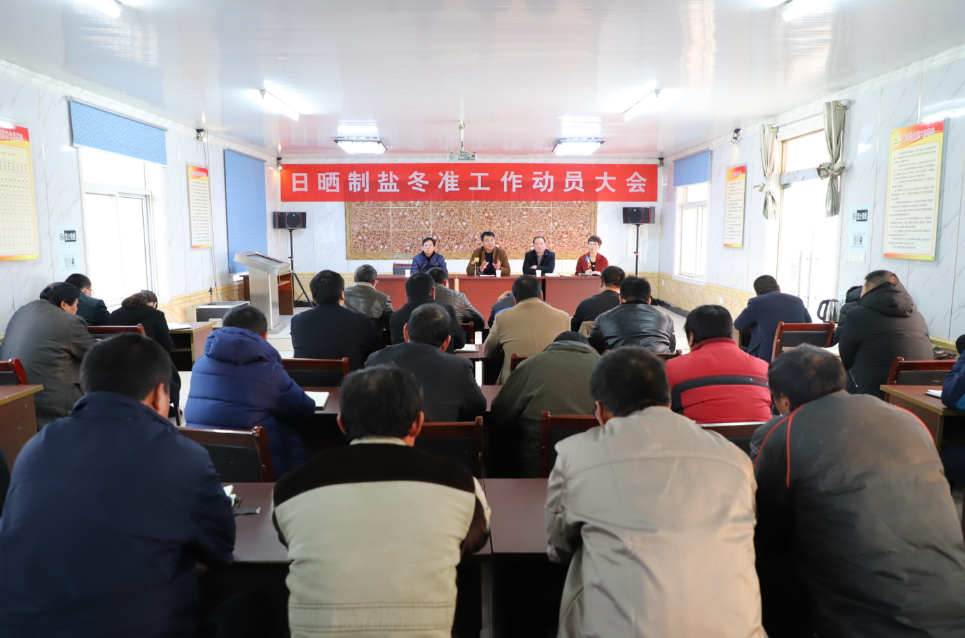 11月30日,日晒制盐公司召开冬准工作动员大会,全面部署冬准工作,掀起大干当前,备战明年工作热潮,公司领导王德志、李国文、古浩光、王宏出席会议,党建、工会、安全、人力、销售等相关部门负责人及各分公司管理人员、班组长参加会议。