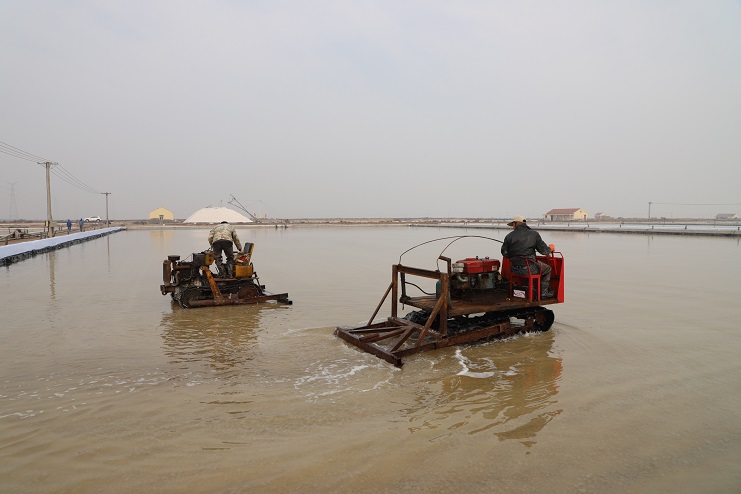 2月27日,B体育手机官方网站入口在日晒制盐公司生产一线看到,一大清早,工人们就开始在盐滩上忙碌着,为因气温较低而暂时停止的扒盐工作做好各项开机前的准备工作,确保扒盐、生产两不误。