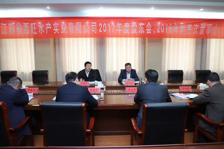 3月22日,江苏省西旺水产实业公司2017年股东会、2018年第一次董事会在投资公司三楼会议室召开,省沿海开发B体育(中国)党委委员、副总经理周金阳,连云港市工业投资B体育(中国)党委委员、总会计师匡友本等股东代表、董事代表出席了会议。