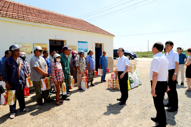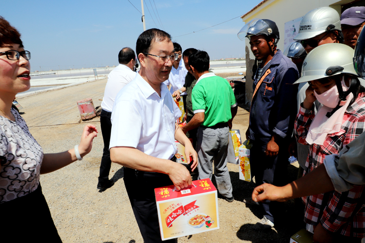 入伏以来,持续高温,为确保一线生产单位工作顺利开展,保证员工身体健康。7月18日上午,B体育(中国)公司总经理胡建明、副总经理张其海一行深入日晒制盐公司走访慰问一线职工,把绿豆、饮料等慰问品送到他们手中,在炎炎夏季,为一线职工送去B体育(中国)公司领导的深切关怀与阵阵清凉。