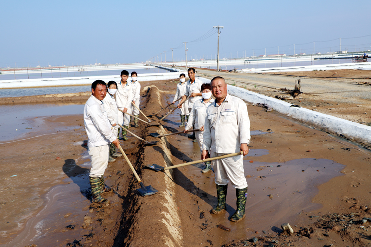 趁着休息的间隙,笔者与身边忙得满头大汗的8班班长祝星星聊了起来。据祝星星介绍,每天员工4点半就到滩头,进行盐池的人工活碴、禀基修复、盐池卤水补充、收放设备检查等一系列工作,因此,合理安排工作量非常重要。他告诉笔者,室外工作工人的劳保服比较厚,一天下来工作服湿了又干,干了又湿,衣服上都泛出厚厚的盐渍。一天下来,全班要消耗2大桶甚至更多的饮用水。现在公司里对B体育手机官方网站入口一线生产岗位员工非常关心,防暑降温工作非常到位。最近,单位又为B体育手机官方网站入口发放高温津贴、电风扇、防暑降温药品。这些让B体育手机官方网站入口员工真切感受到组织的力量,组织得伟大,所以虽说现在比平时更辛苦,B体育手机官方网站入口有信心战高温、夺高产。