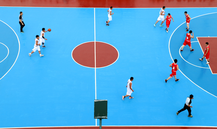 9月15日上午,灌西赛区,开幕式结束后的揭幕战由灌西代表队跟神特代表队对战,伴随着哨声的响起,现场的气氛急剧攀升,双方很快进入了激烈的角逐。双方的拉拉队员也奋力加油,最让人印象深刻的是灌西12号球员王超,一米92的大高个,不管是对手在进攻还是队友在进攻,整场的篮板球都在他的控制之下。身着98号球衣的灌西球员陆应兵在球场上如同一道白色闪光,快攻、长传、高长传、远投,将比赛的节奏迅速带动起来,奋力进球。而身着红色球衣的神特队坚持稳打稳扎的战术,很好地控制住了比赛局面,神特15号队员孙辉在防守严密的灌西队的控制下,连连远投进球,使比分一直紧追灌西,可惜他一个人的力量不足以挽救局面,最终以40比89分的大比分落差败给灌西队。