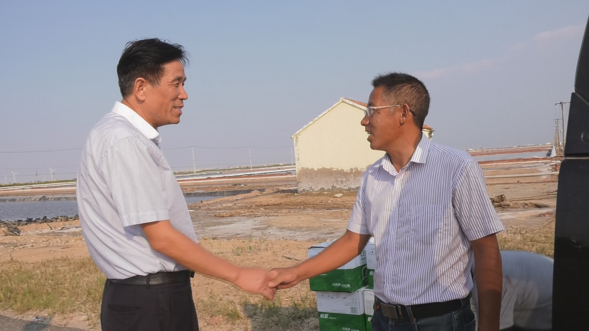 9月28日,西旺水产公司总经理茆庆军在投资公司副总经理古浩光的陪同下,慰问日晒制盐公司的扒盐机组,向坚守扒盐岗位辛勤工作的员工表示感谢。