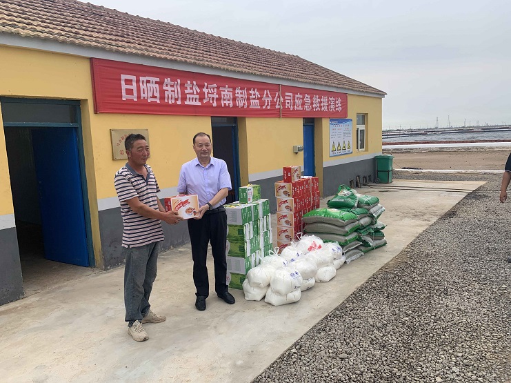 工作在一线的盐工接到投资公司领导送来的慰问品纷纷表示,虽然天气闷热,但感受到了公司的关怀,一定会克服困难,恪尽职守,确保安全,积极投身于公司大生产中。(孟然)