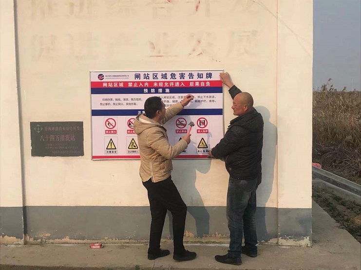 此次检查以泵站为对象,主要对电线、电路安全、防护设备等项目进行重点检查。对重点危险区域张贴危险告知牌,提高员工安全意识,保障生命财产安全。
