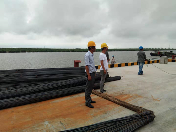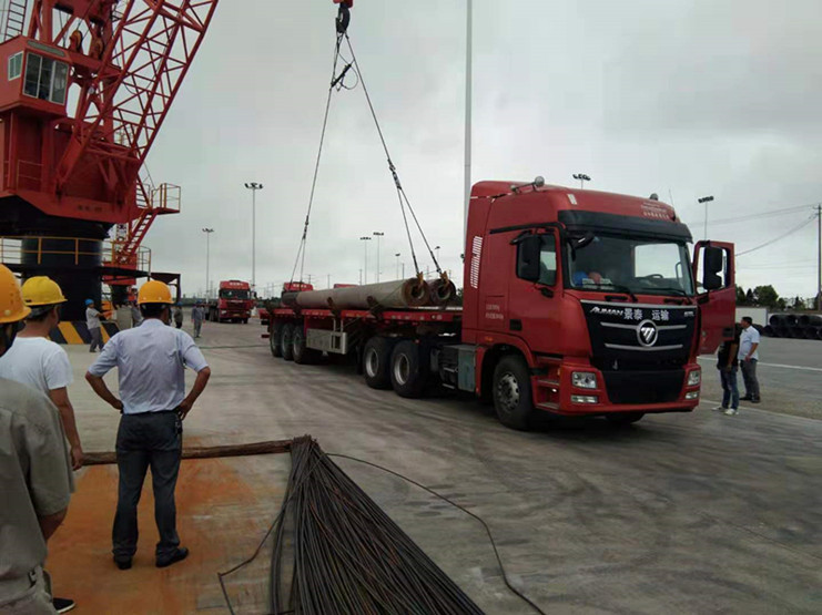 7月17日上午,宵洋物流码头迎来了两艘满载着管桩的货船,伫立在岸上,望着满载货物的两艘船,我心生疑虑——如此长的管桩如何从船中取出?