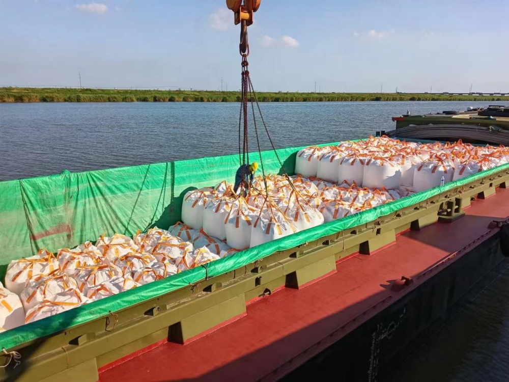在船舱内和码头的温度相差10度,而且船舱的深度达5米左右,浓郁的氯化氨气味,让闷热的空气仿佛凝固,但工人们依然忙碌有序,克服困难,没有丝毫抱怨,在人与机械化完美的组合,一袋袋货物的运输,传递着一条不知疲倦的生产作业线。看着货物稳稳装载在船上,让人体会到什么是真正的团队协作。