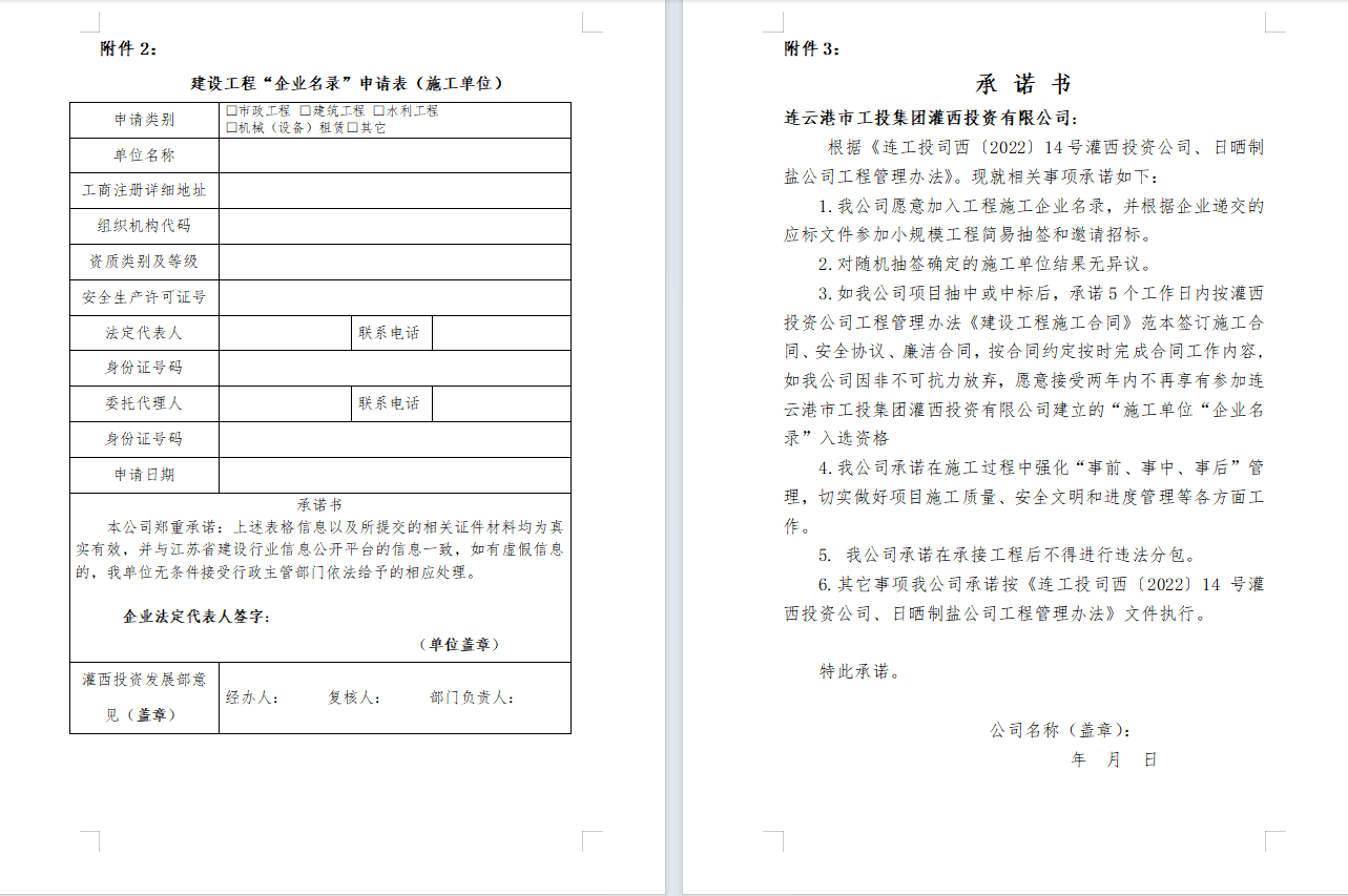 灌西投资有限公司日晒制盐有限公司关于建立国有资金投资小规模工程施工“企业名录”的公告