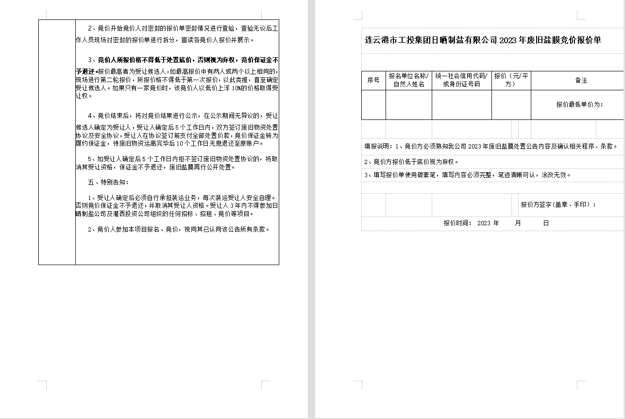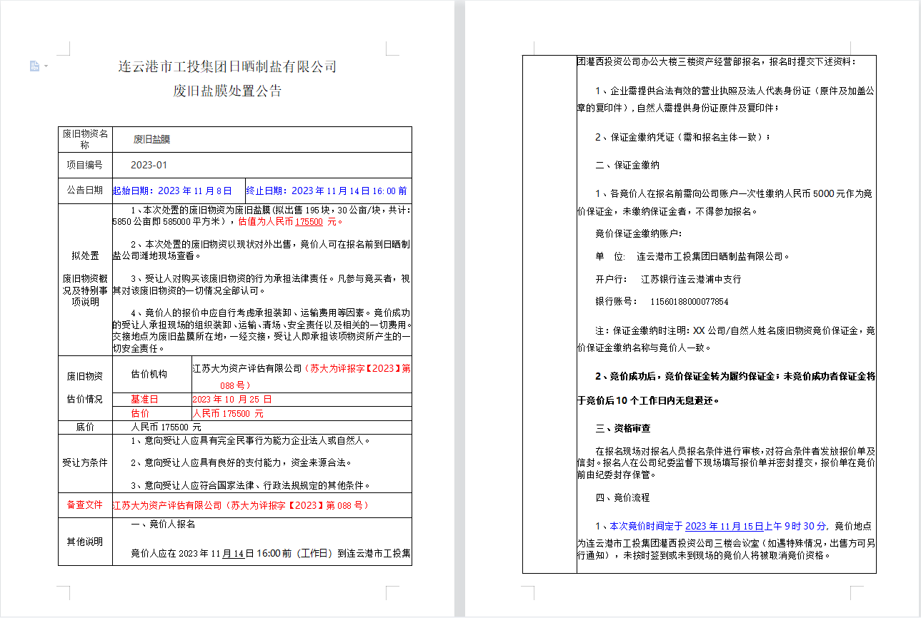 连云港市工投B体育(中国)日晒制盐有限公司废旧盐膜处置公告