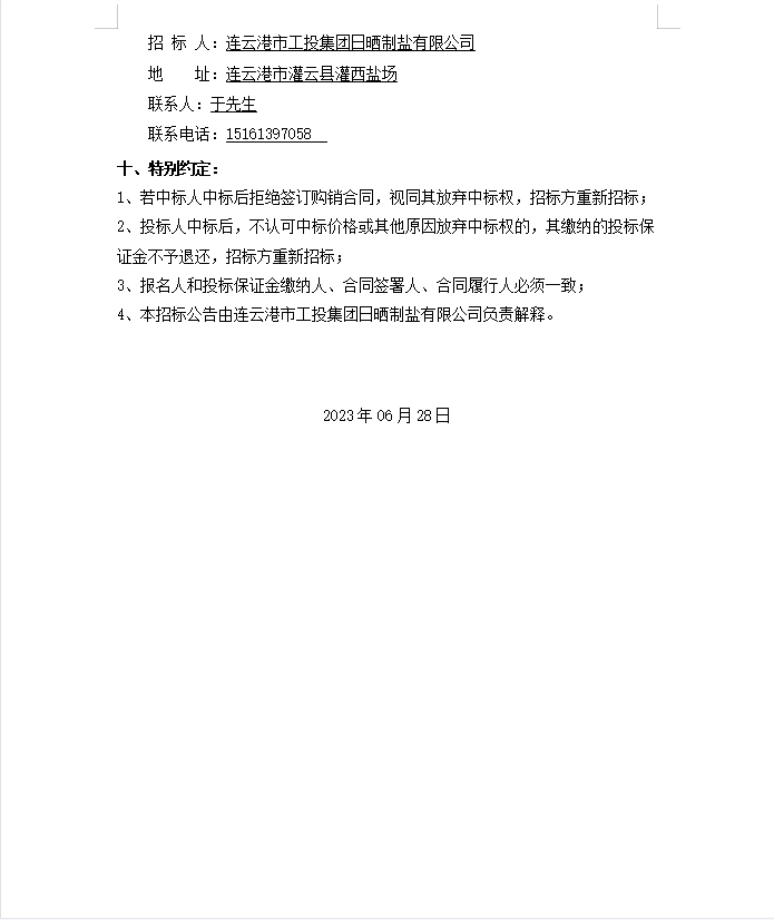 连云港市工投B体育(中国)日晒制盐有限公司漏电断路器等物资招标公告