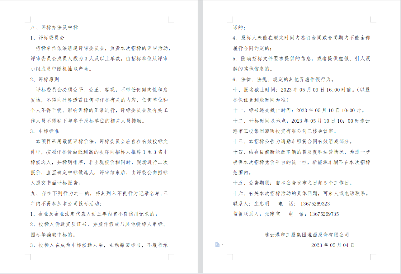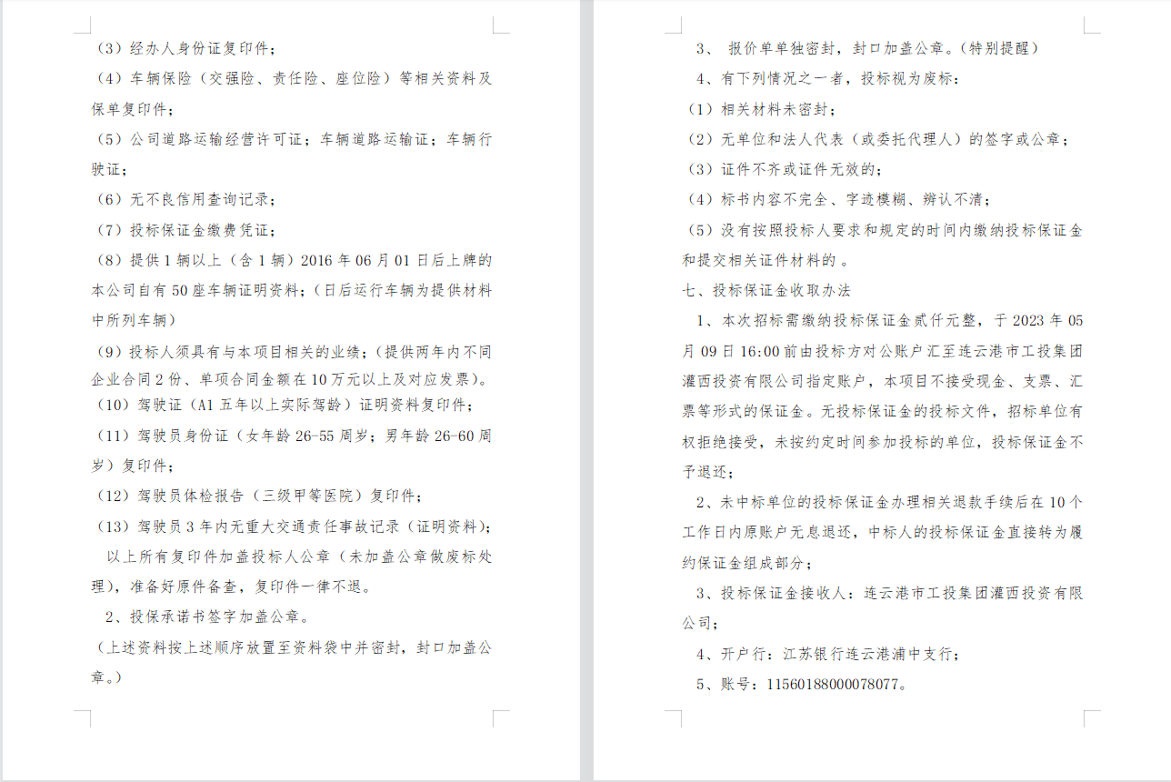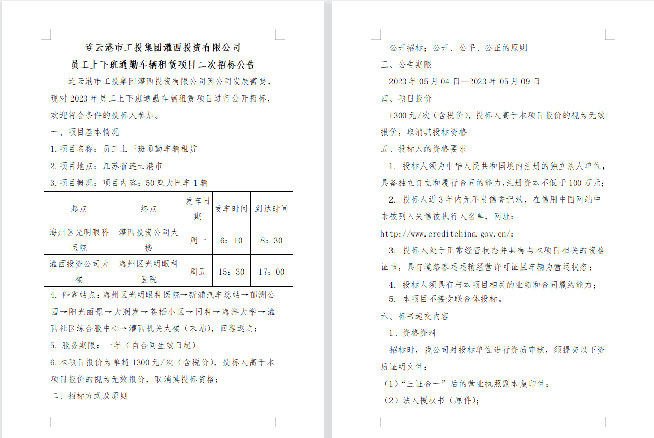 连云港市工投B体育(中国)灌西投资有限公司 员工上下班通勤车辆租赁项目二次招标公告
