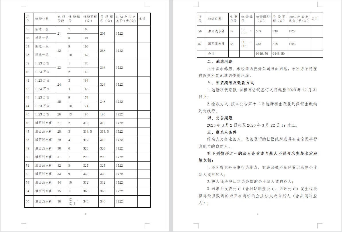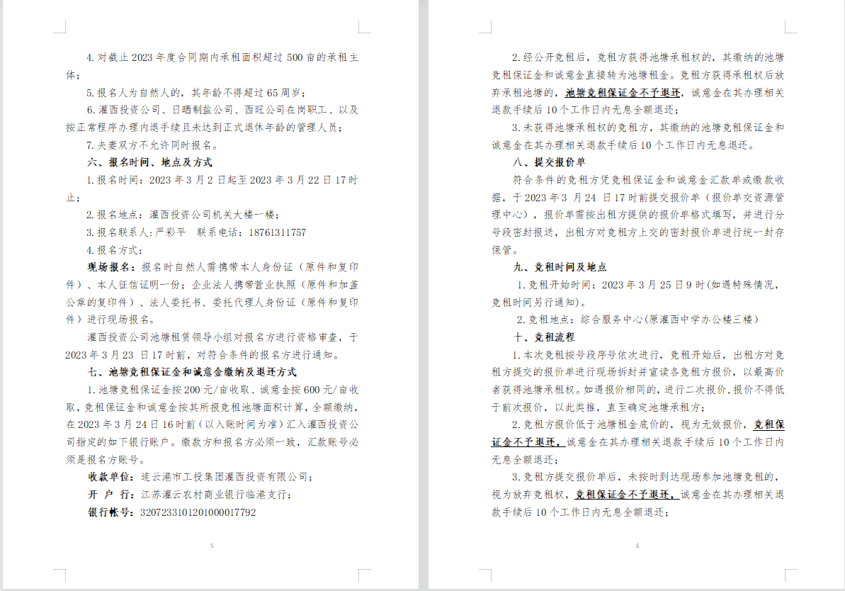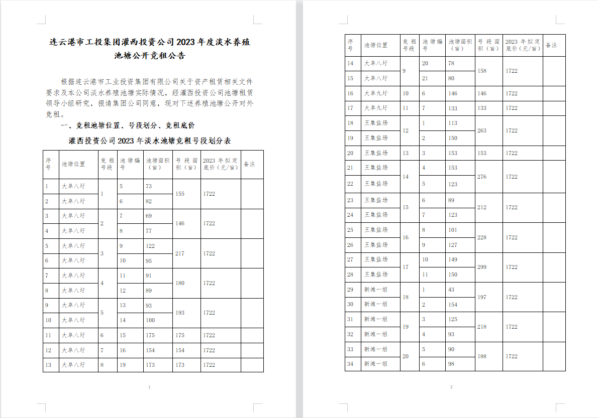 连云港市工投B体育(中国)灌西投资公司2023年度淡水养殖池塘公开竞租公告
