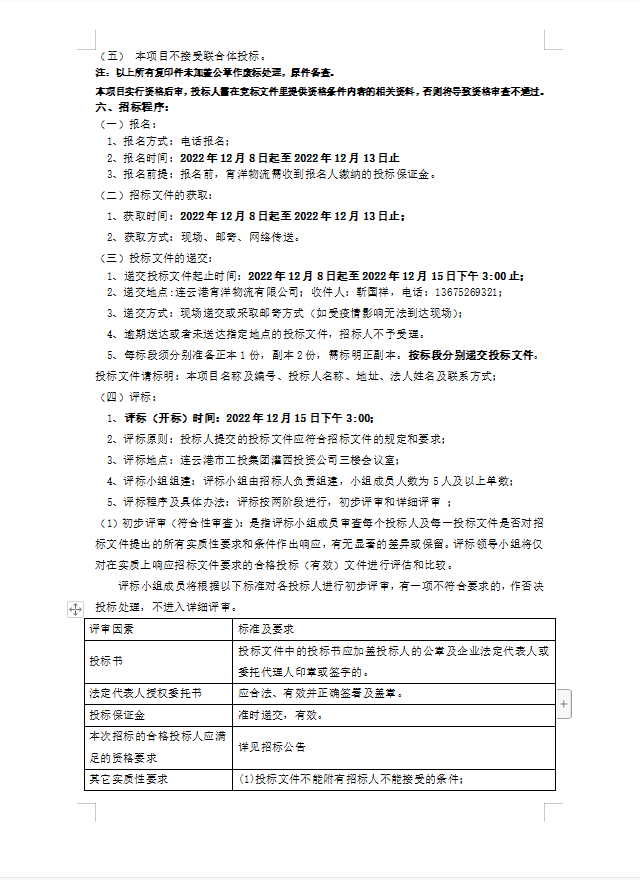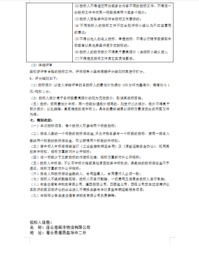 连云港宵洋物流有限公司原盐异地转运项目招标公告
