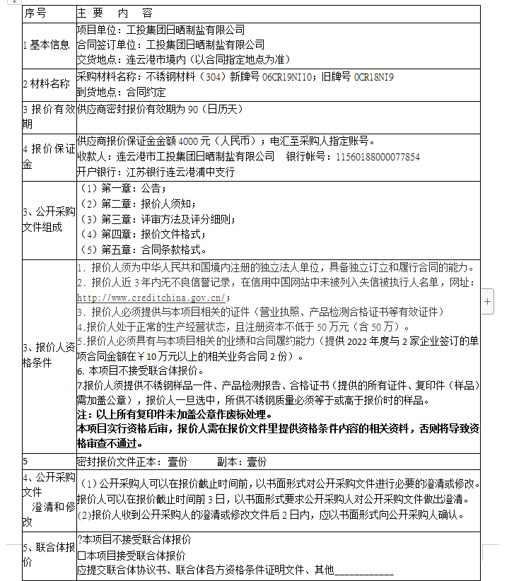 报价保证金接收人:连云港市工投B体育(中国)日晒制盐有限公司。