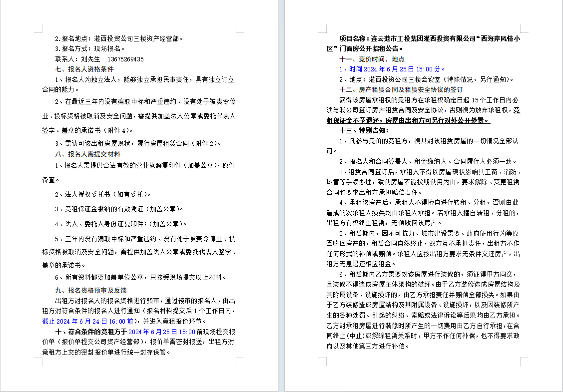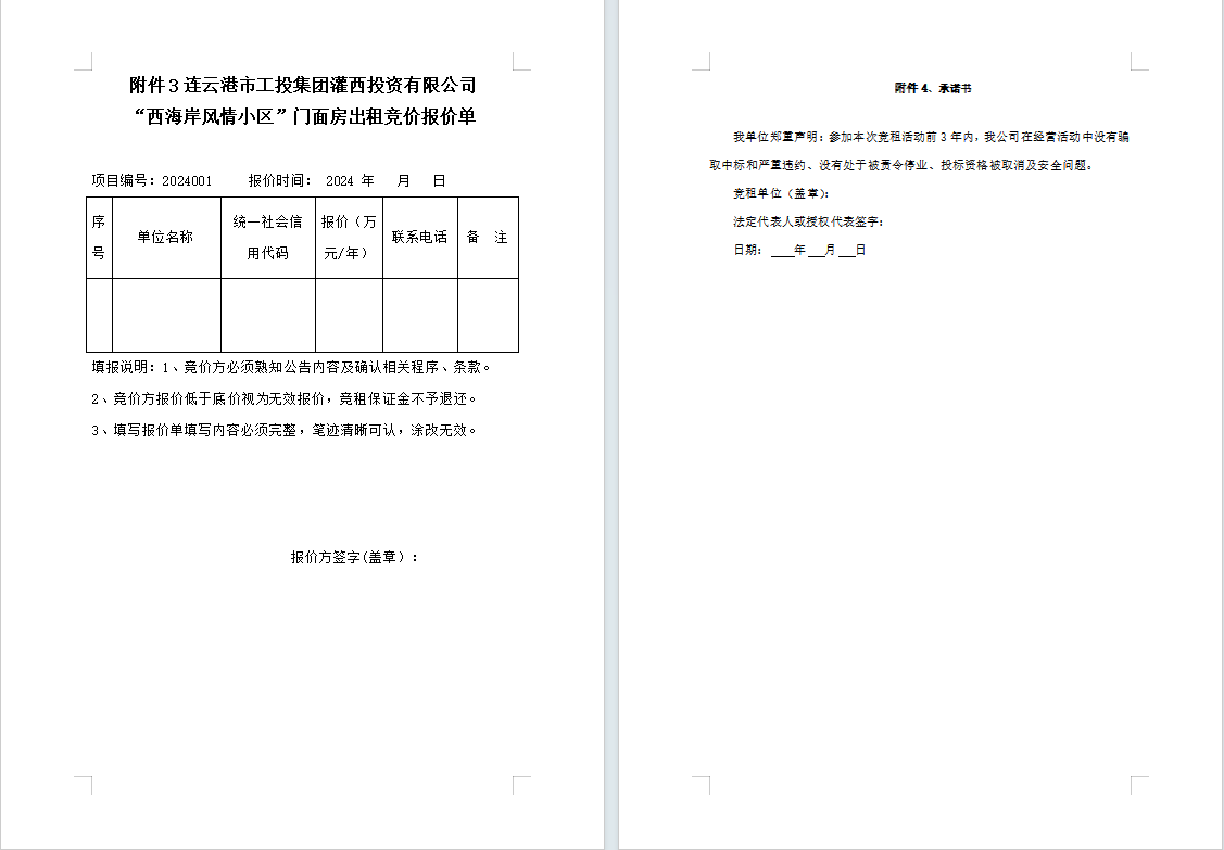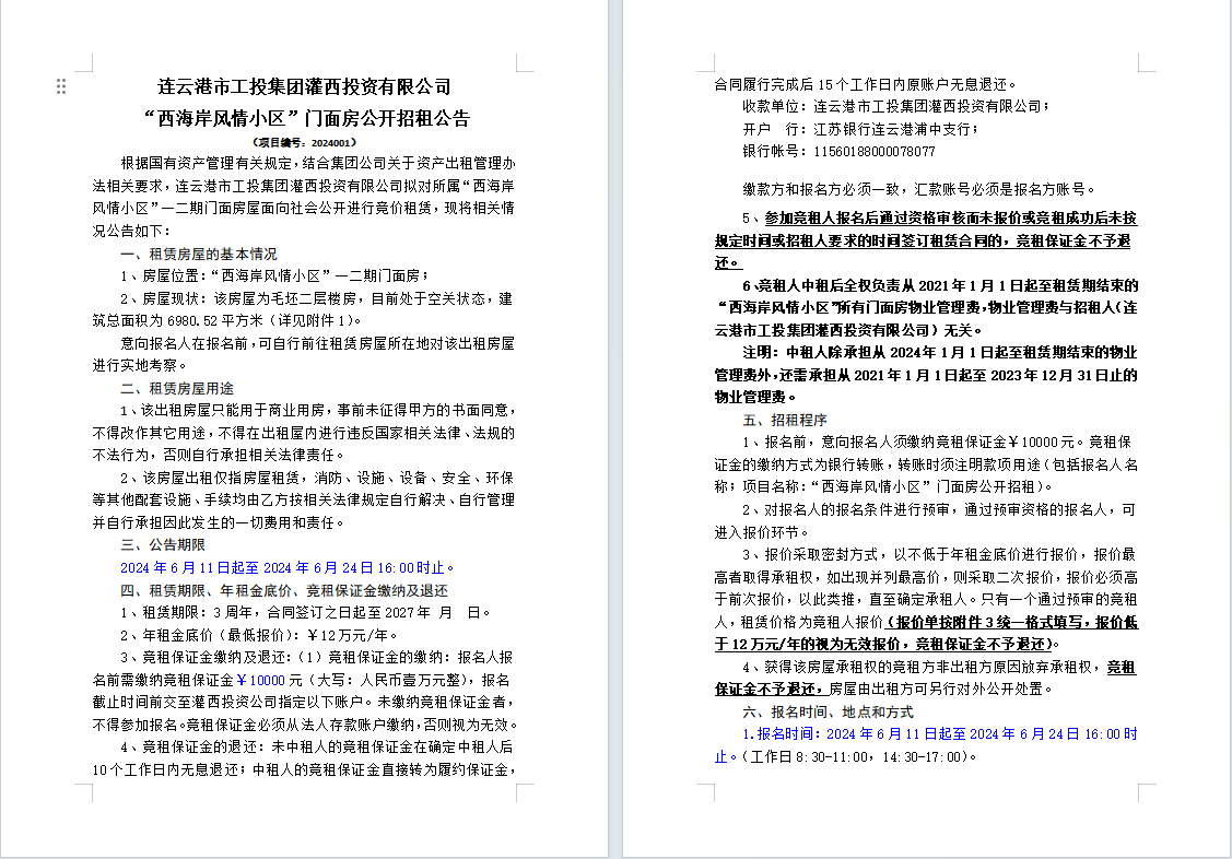 连云港市工投B体育(中国)灌西投资有限公司“西海岸风情小区”门面房公开招租公告