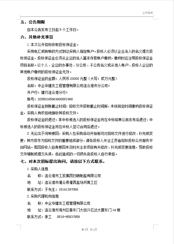 日晒制盐公司 液体氯化钙(钙液)采购招标公告