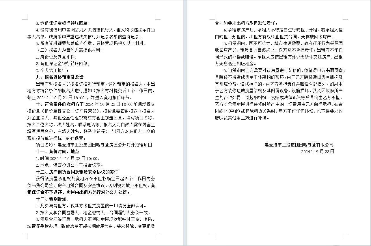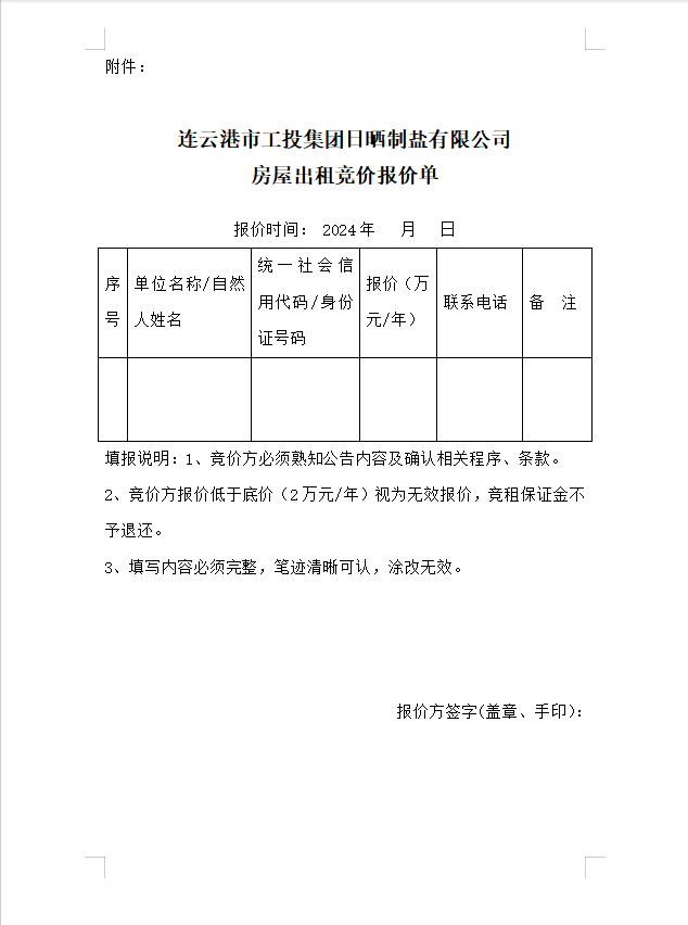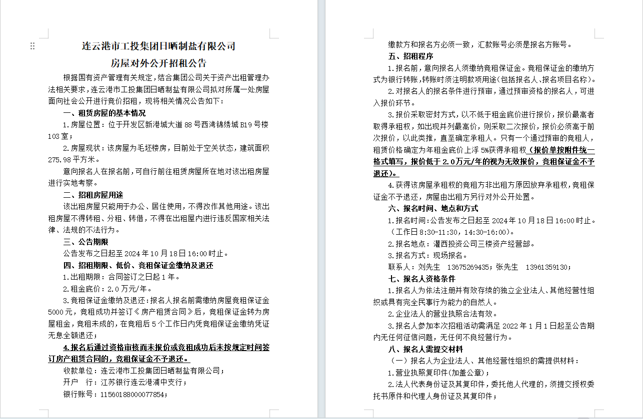 连云港市工投B体育(中国)日晒制盐有限公司 房屋对外公开招租公告