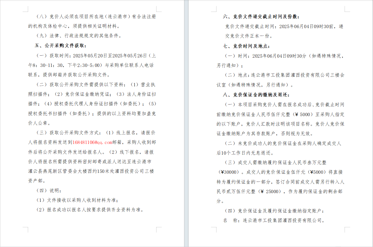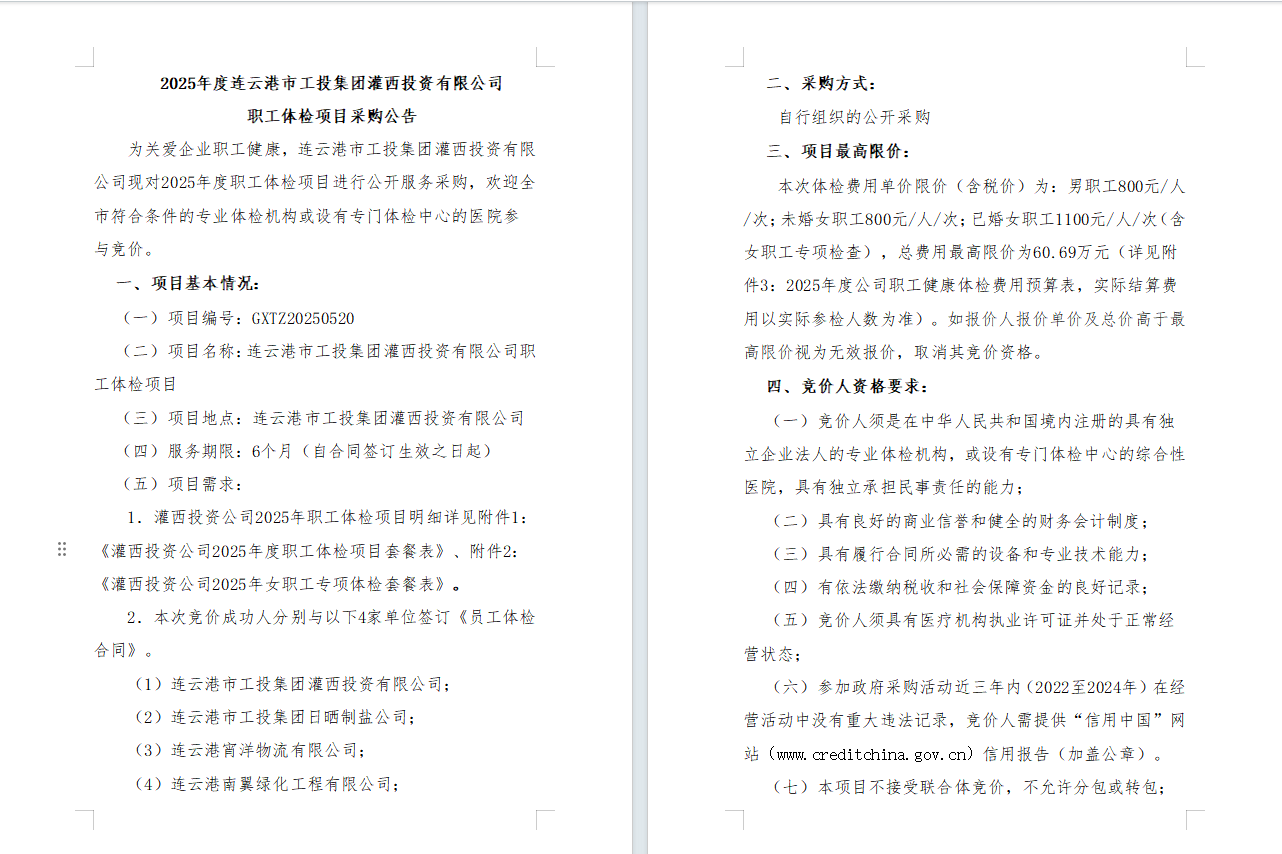 2025年度连云港市工投B体育(中国)灌西投资有限公司职工体检项目采购公告
