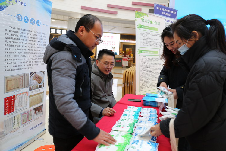 12月21日上午,我公司到连云区嘉瑞宝广场参加连云区2023年食品安全宣传周活动。活动中,我公司员工认真向咨询者宣传食盐相关知识,并耐心解答他们提出的问题,引导他们安全选购食盐、科学食用食盐。(金宣)