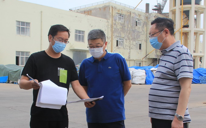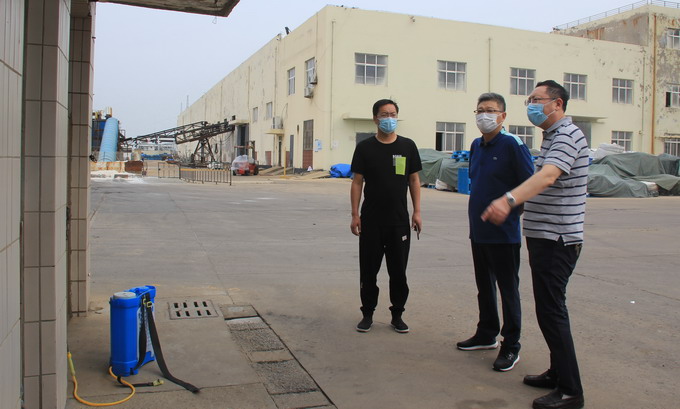 8月10日下午,B体育(中国)公司总会计师匡友本到我公司检查指导疫情防控工作,我公司党委书记、董事长、总经理朱桂玉,党委副书记、纪委书记、工会主席曹开明陪同。