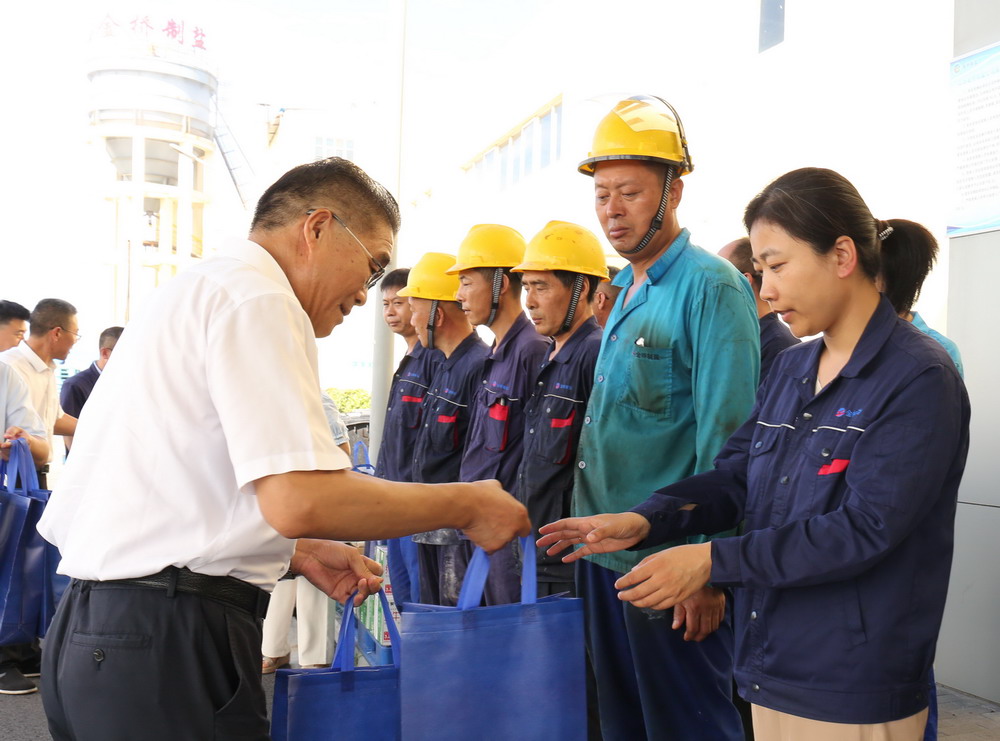 7月8日,B体育(中国)公司副总经理刘承志来金桥制盐公司“送清凉”,走访慰问坚守在高温岗位的一线职工。 刘承志叮嘱职工要增强高温作业时的自我防护意识,注意劳逸结合,预防中暑,做到安全生产。要求公司领导班子切实保障广大职工的生命安全和身体健康,想方设法改善生产一线岗位高温作业环境,合理安排好作息时间,把各项安全防护措施落实到位。(张 飞)