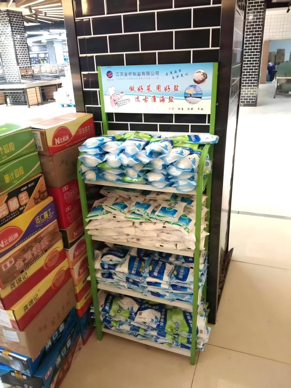 近日,金桥制盐公司自主品牌盐产品成功进驻鲁豫地区商超,“古淮”“猴王”两大品牌食盐销售频传捷报。