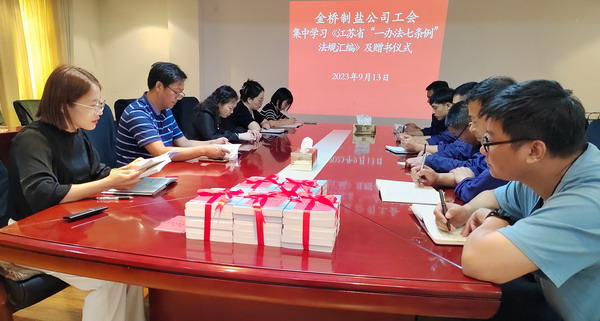 为落实市总及B体育(中国)工会相关要求, 9月13日,我公司工会举办集中学习《江苏省“一办法七条例”法规汇编》活动及赠书仪式。公司工会负责人,各分会、人资部门、安全部门负责人,部分职工代表参加。
