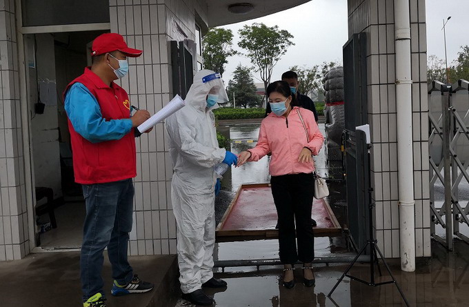 机关部室志愿者配合做好体温测量、消毒及进出人员登记