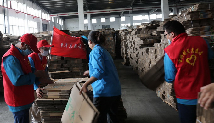 携手战“疫”,党团志愿见真情。公司党委组建党团志愿者突击队,主动与各支部联系,为他们解决生产中的实际困难;志愿者们深入车间生产一线,帮助配送中心整理库房吨袋、清扫车间责任区垃圾,帮助包装盐车间整理纸箱堆码、和盐袋堆放,打扫库房卫生等,及时帮助他们解决实际困难,充分发挥支部的战斗堡垒作用和共产党员的先锋模范作用。(谢杰)