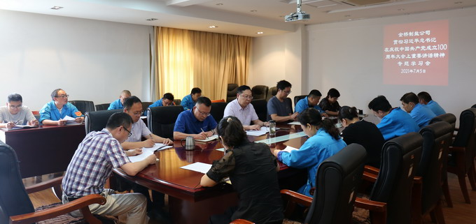 7月5日上午,我公司召开党委理论中心组(扩大)学习会,专题学习习近平总书记在庆祝中国共产党成立100周年大会上的重要讲话精神。公司党委书记、董事长、总经理朱桂玉主持学习会。公司领导班子成员及其他党委理论学习中心组成员,各车间单位党政负责人,机关各部室负责人参加学习会。