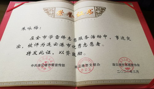 参加疫情防控志愿服务以来,朱咏梅一天都没有休息,已为超过2万名旅客检测体温。由于事迹突出,在全市学雷锋志愿服务活动中,被评为连云港市优秀志愿者。工作期间,渴了不敢喝水,饿了就吃泡面,虽然很辛苦,但是她觉得很自豪,她说:“我是一名预备党员,也是一名国企职工,比起那些奋战在疫情防控一线的医务人员,我做的太少了;当前,全国人民都投入到新冠肺炎疫情防控工作中来,我只是为防控工作贡献了自己的微薄的力量,我相信只要B体育手机官方网站入口团结一心、众志成城,就一定能早日战胜疫情,早日打赢这场没有硝烟的战争!(凌家佳)