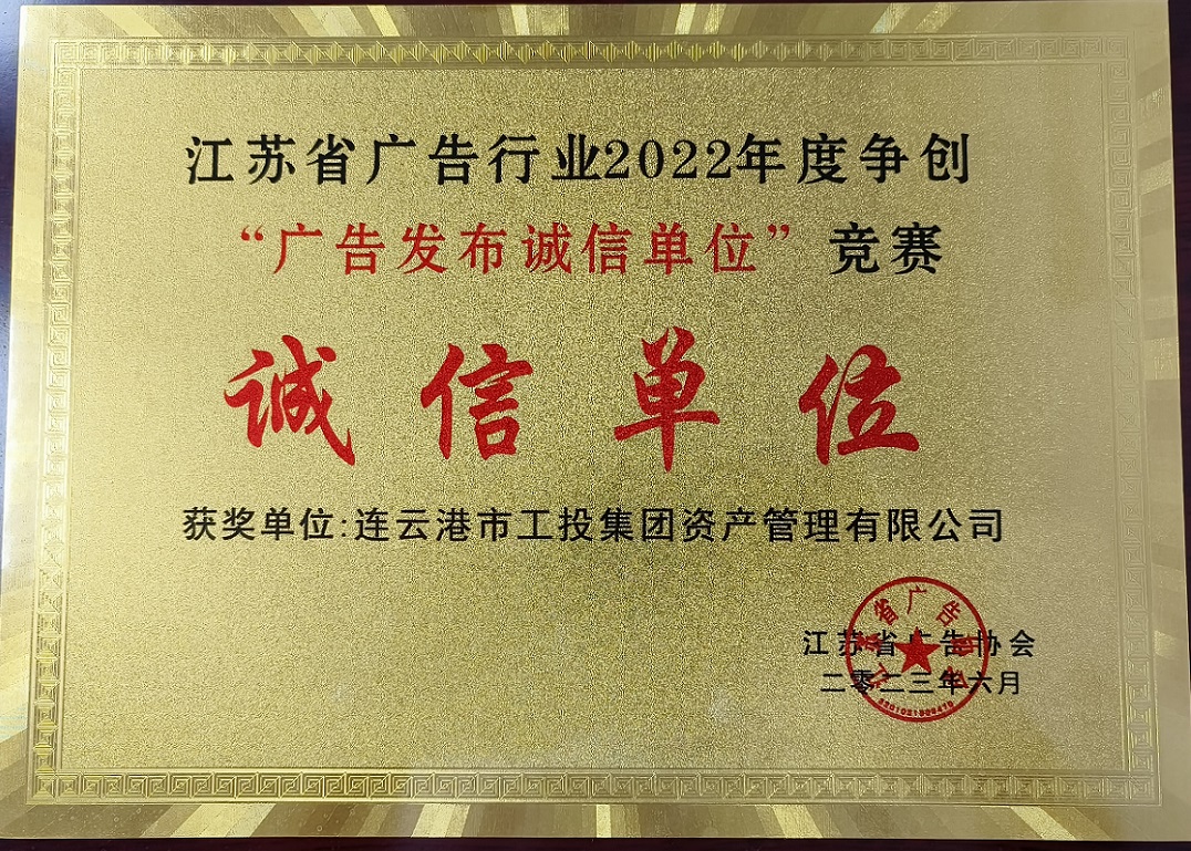 近日,江苏省广告协会七届六次理事会,在南京召开。资产管理公司荣获“2022年度江苏省广告行业广告发布诚信单位”,这是继2019年以来连续四年获此殊荣。