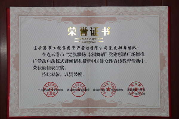 资产管理公司获连云港市党建惠民广场舞活动“最佳表演奖”