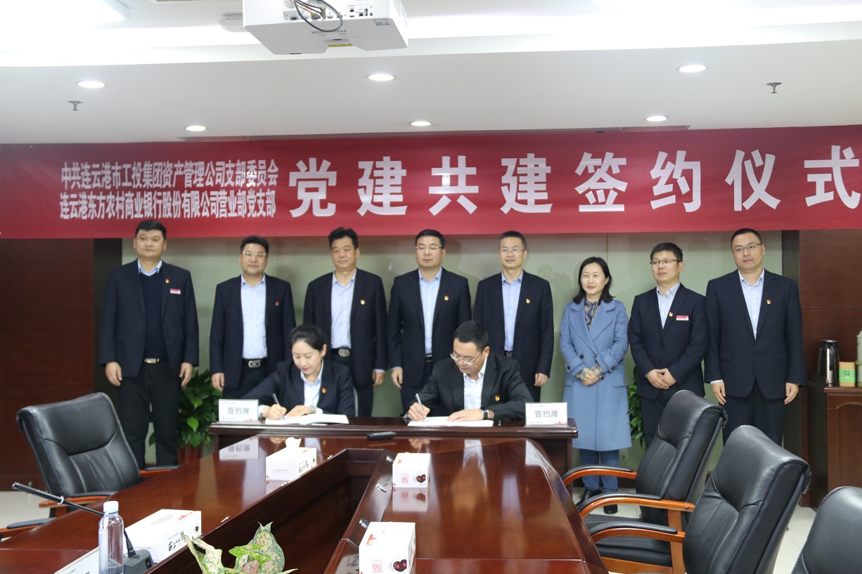 资产管理公司党支部为进一步深化银担合作,发挥党建共建桥梁纽带作用,落实支部“三联三促”年度书记项目品牌建设,11月8日下午,与连云港东方农商银行营业部党支部签订党建共建合作协议。