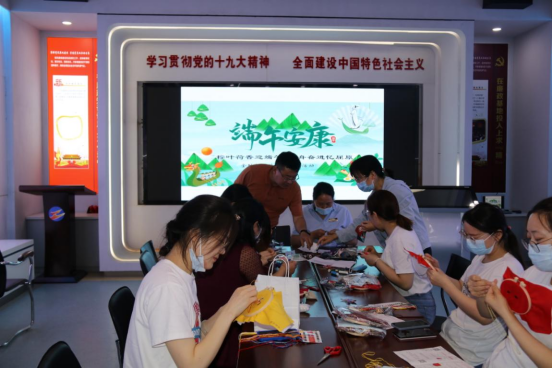 | 金融板块端午节系列活动 五月五,过端午,划龙舟,忆先祖!为弘扬中华民族优秀传统文化,活跃企业文化,增强员工爱国主义教育,值此端午节来临之际,5月30日,资产公司党支部、工会联合开展“粽叶荷香迎端午,划舟奋进忆屈原”端午节系列活动。 此次活动以端午节为契机,以“巧手绣荷包”、“旱地赛龙舟”、“观影忆屈原”、“吃粽子比赛”等活动为载体,把爱国主义教育、同心奋进的主题贯穿于活动中,使广大员工在感受传统文化的基础上,释放了压力,愉悦了身心。 在“旱地赛龙舟”活动中,各参赛队冒着正午的烈日,齐心协力,奋力“划舟”,公司支部书记徐兵亲自检查道具并为开赛发令。最终,第三工会小组代表队获得本次比赛的冠军!