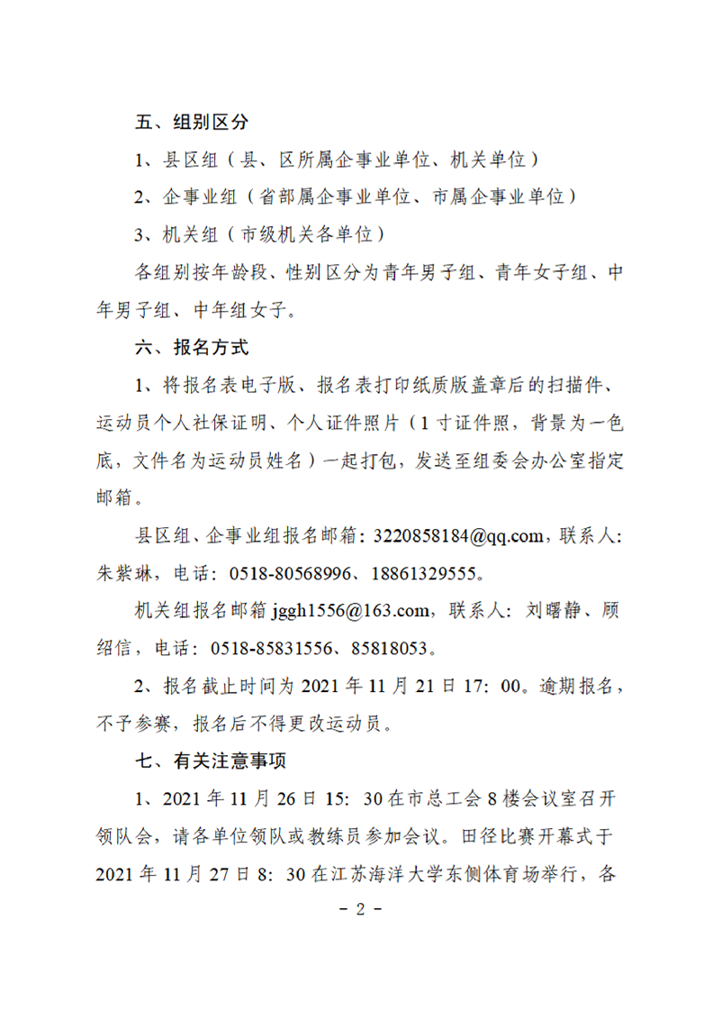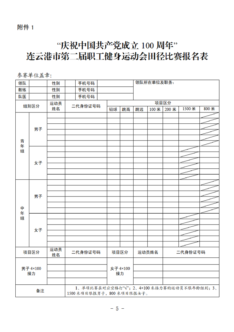 连云港市第二届职工健身运动会田径比赛的补充通知