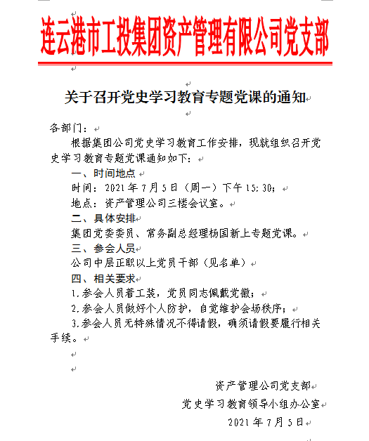 关于召开党史学习教育专题党课的同志