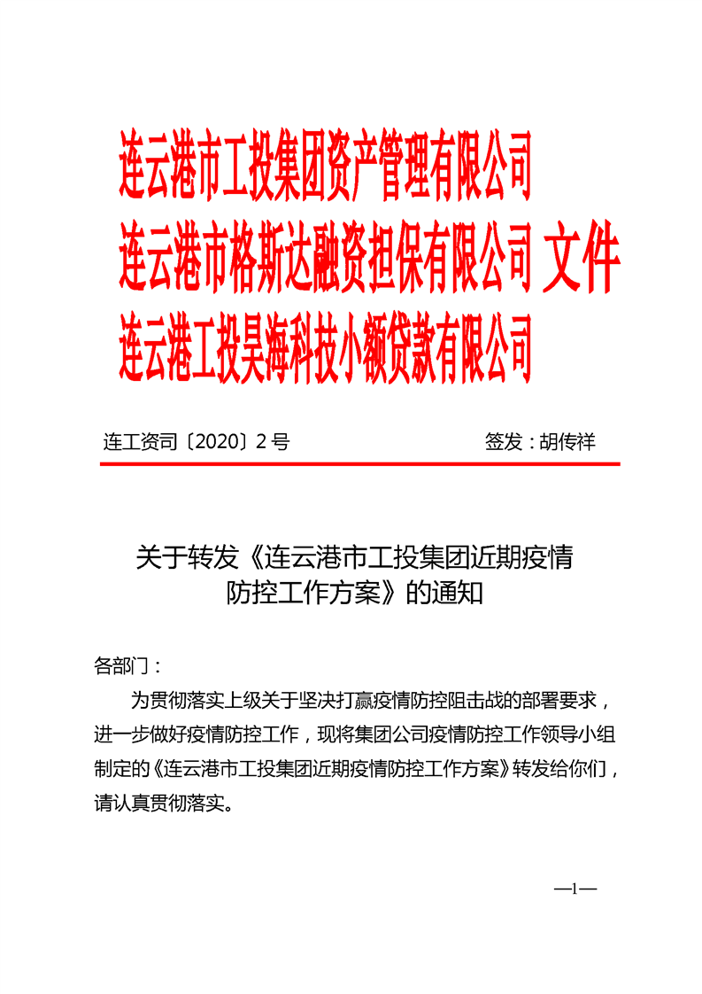 《连云港市工投B体育(中国)近期疫情防控工作方案》的通知