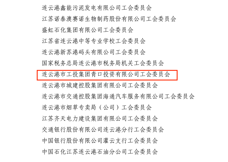 根据《江苏省总工会关于表彰省模范职工之家、模范职工小家、优秀工会工作者的决定》(苏工发【2023】4号)文件精神,青口投资公司工会荣获“江苏省模范职工之家”称号。