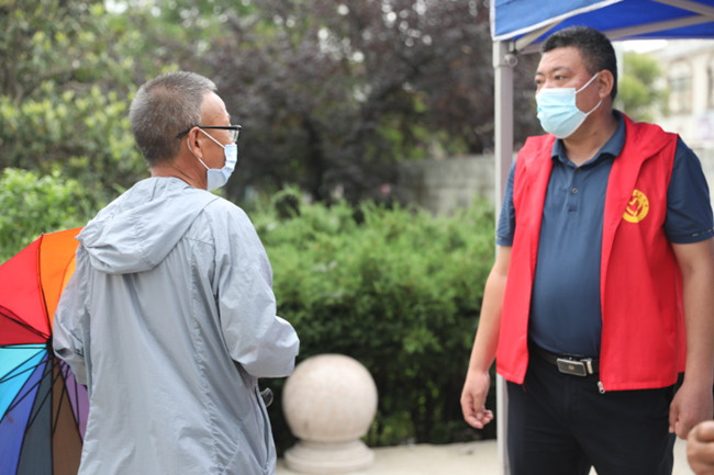 为了避免高温中暑,天刚蒙蒙亮,黄沙坨社区核酸检测现场已经一片忙碌。最危险的地方,总有共产党员的身影,在党员们示范和带动下,入党积极分子同样挺身而出。泰祥党支部书记丁海明带领积极分子孙振然主动受领维护秩序任务,任劳任怨,毫无怨言,检测现场秩序井然有序。当大家沉静在睡梦中时,来自盐场卫生服务站的党员李传红和积极分子王秀丽已经穿上防护服,等待即将前来核酸检测的1500位普通居民。他们用行动践行初心,用奋斗与奉献向党组织表达自己的一片赤诚。(青 宣)